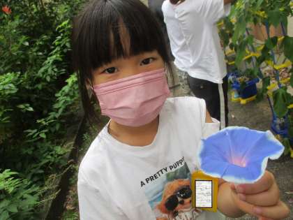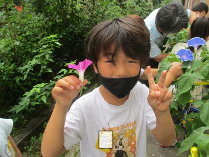 あさがおの花が咲きました。今日は,記念に押し花にしようと,花を一つ獲りました。