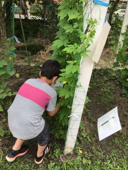 ついに,ゴーヤが大きくなってきており,とても嬉しそうに教えてくれました。