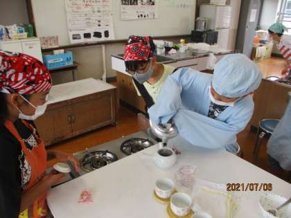 ガスコンロの火の調整の仕方も,班で相談しながらしっかりおこない,水を沸騰させてお湯を作りました。