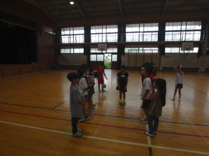 遊び係が中心となり,ドッヂボールをしました。自分たちで声をかけ合い,遊びを進めている姿がとってもすてきです!雨の日が続いていますが,思い切り体を動かすことができてよかったです!