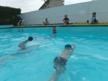 雨予報でしたが,プールに入ることができました。子どもたちの笑顔を見ていると,入れてよかった!と感じます。