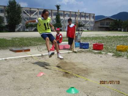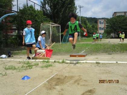水泳学習の合間をぬって,走り幅跳びの最後の学習をおこないました。