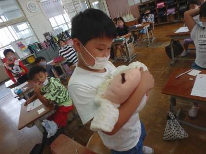 実際に産まれたばかりの重さの赤ちゃん人形も抱っこしました。
