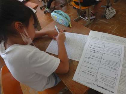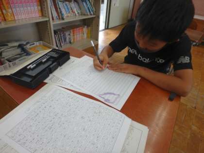 読書感想文の「中心部分」を考えました。読んだ本と自分を関わらせて感想を書くことは難しかったようですが,何とか自分の力で書こうと取り組んでいる姿がすてきでした。