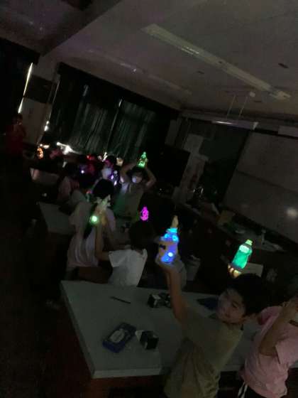 真っ暗な部屋の中に,ランプの色がつくと,歓声があがっていました。