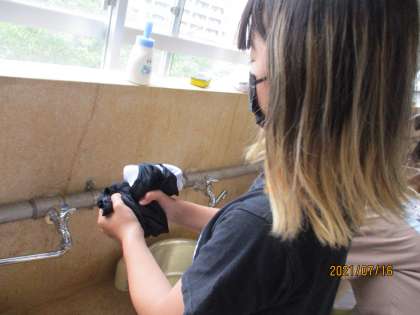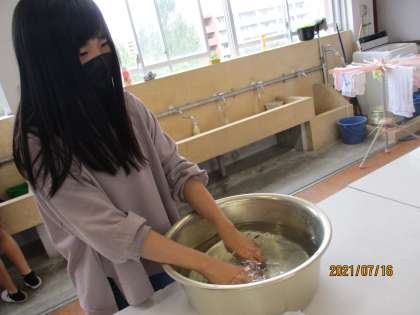 普段はなかなか手洗いはしないようですが…みんな上手に楽しく手洗いをすることができました。これからは,洗濯機と手洗いを使い分けながら,よりよい暮らしができるよう,工夫できるといいですね!
