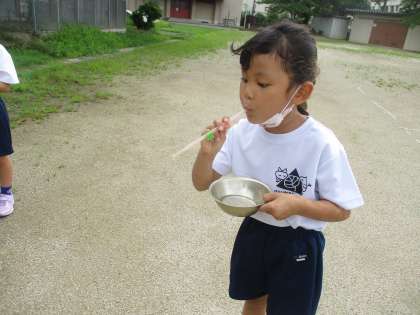 楽しみにしていた「しゃぼん玉あそび」!まずは,自分で作ったストローを吹いてしゃぼん玉を作ります♪
