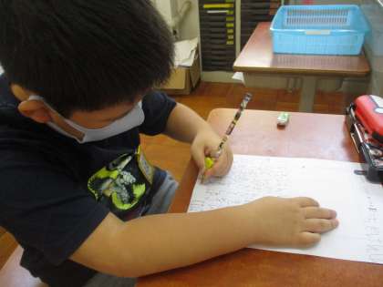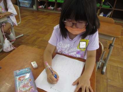 夏休みに絵日記の宿題を出しているので,日記の書き方を学習しました。どんなことを書けばよいのかを見つけたあとには,実際に日記を書いてみました。