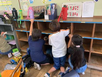 教室の机やロッカーを掃除しました。