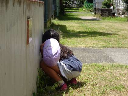 物陰に隠れて様子を見る姿も。