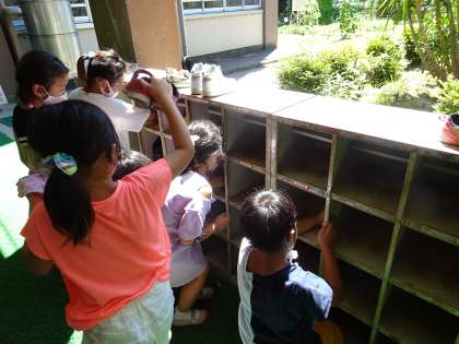 下駄箱は特に力を入れて掃除をしたので雑巾がボロボロ。