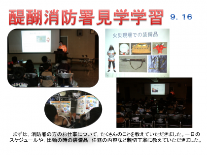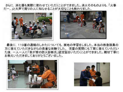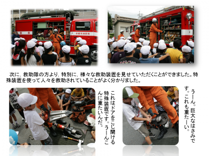 救助隊のある醍醐消防署を見学学習させていただきました。滅多に見せていただけない特殊装置まで見せていただき,子どもたちの目が輝いていました。
