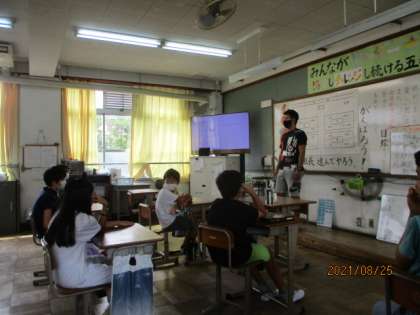 2学期からお世話になる藤田先生の自己紹介を5年生みんなで聞きました。