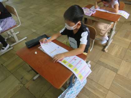 全員しっかりと名前を書き,1学期の復習をしました。