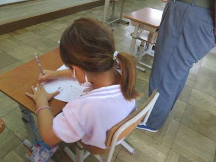 算数はやはりかなり得意なようで,筆算は自信を持って解いていました。