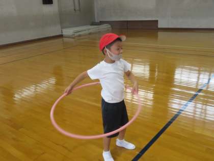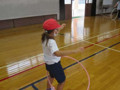 2学期最初の体育はダンスとフラフープを使って遊びました。