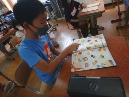 この日は身の回りの物の言い方について学習をしました。ポインティングゲームをしながら楽しく覚えることができました。