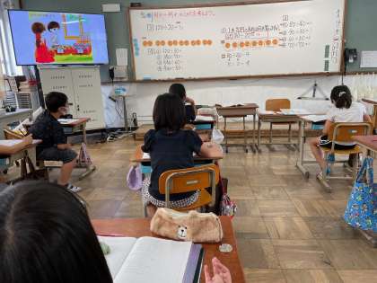 80÷20のしかたを考えていきましたが,何人もの人がホワイトボードの前まできて,図を使い説明することができていました。これから少しずつ難しくなるかもしれませんが,みんなで考えをつないでいきながら,今日のようにしっかりと考えていきましょうね。