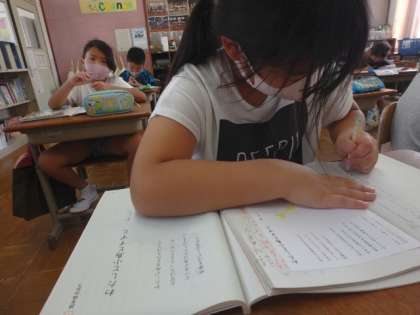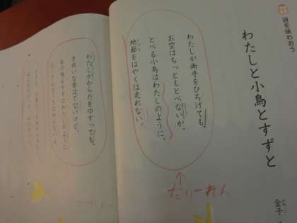 「わたしと小鳥とすずと」の詩を読みました。自分が気に入ったところを考え,金子さんがみんなに伝えたいメッセージも想像しました。