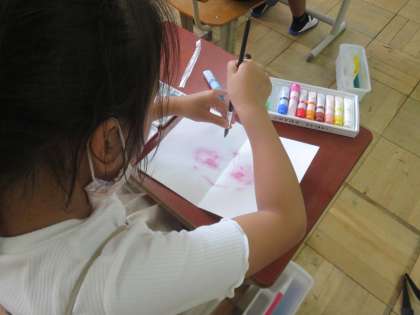 絵の具に息を吹きかけ流したり,半分に折ったりとなかなか予想通りにできない作品を作る楽しさを学びました。