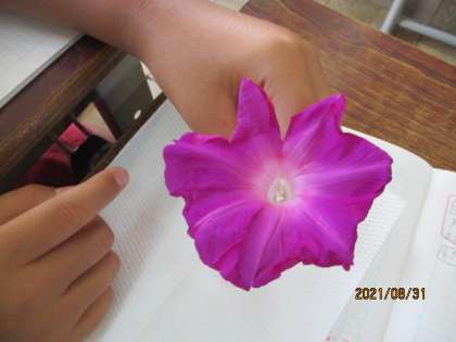 観察を通して,花びらは1枚であること。真ん中にはめしべが1つあり,その周りにおしべがあること。がくというものが周りにあることなど,今まで知らなかったことをたくさん知る事が出来ました。