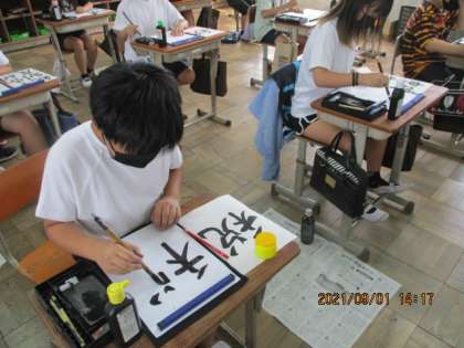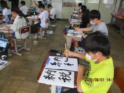「税」に関する習字に取り組みました。自分で言葉を選び,自分で気をつける所を意識しながら最後まであきらめずに書くことができました。