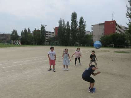 誕生日係を中心にみんなで作ったメッセージカードを渡したり,サッカーやドッジボールをして遊びました。