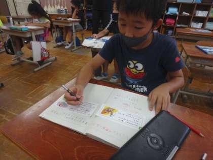35人の子どもたちが4人がけの長イスに座る時,何脚の長イスが必要なのかという問題に取り組みました。子どもたちは実際の場面を想像しながら,式や図を使って一生懸命考えることができていました。