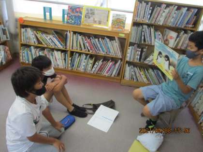 みんな楽しそうに自分の読みたい本を選び,たくさん読書ノートに記入していました。