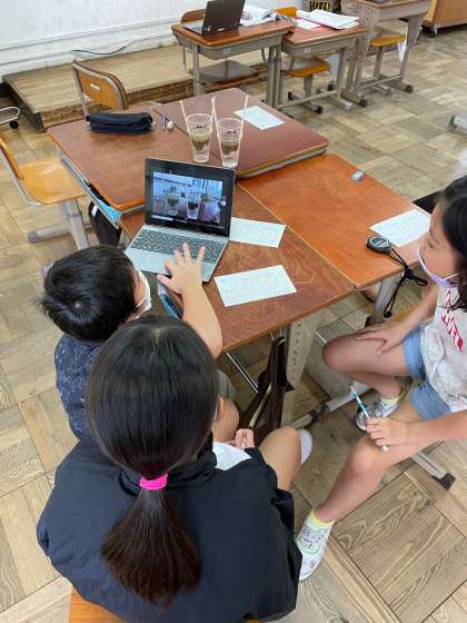 観察をした後は,どちらの方が水がよくしみこむのかの実験をしました。