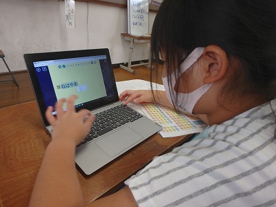 排便や歯について調べたことをカードにまとめてスライドを作っていましたが,完成が近づいています!「このカードの時にはどんなことを話そう?」と発表の仕方をグループで話し合っていました。