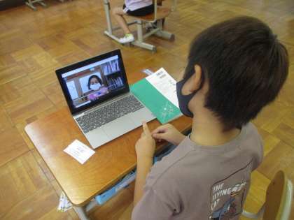 タブレットに録画した音読を友達に送りあい,友達の音読を聞きました。「〇〇さんのこの読み方いいな!」と友達の音読のいいところを見つけることができました。