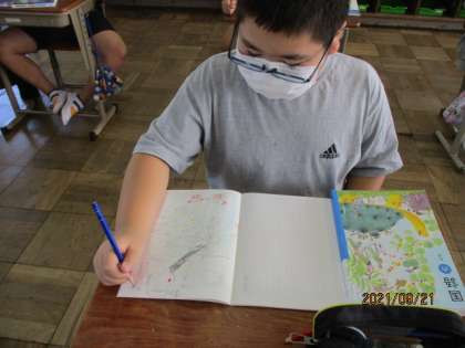 今日の国語科の学習はやまなしの「五月」を絵や図で表し,イメージを深めました。