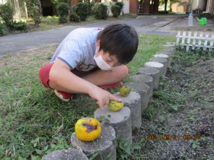 その後は拾っては並べて,秋の訪れを感じる香りを楽しみました。