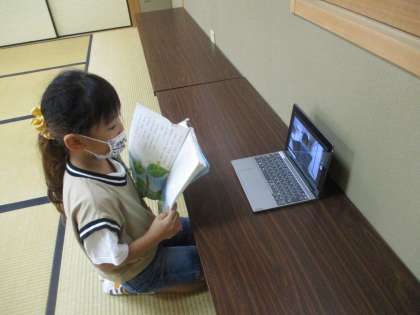 「やくそく」の音読の発表会をしました。今回は,別の教室で1回だけ音読の録音をし,その映像を皆で見て,感想を言い合いました。はじめの頃よりも,レベルアップした音読をすることができました。