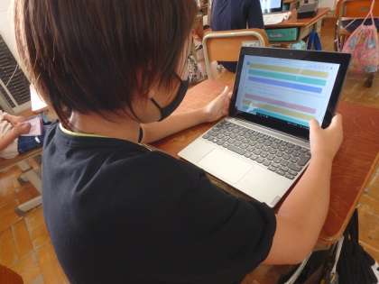 「商店のはたらき」の学習のプレテストをタブレットで行いました。新しい試みだったため,子どもたちにも新鮮だったようです。「次もこれでテスト前のふり返りしたい!」と話していました。