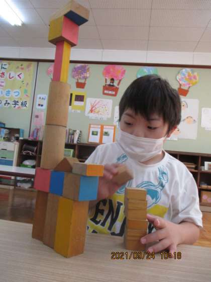 すると積み木をどんどん積み上げていき・・・高〜い塔が完成しました。