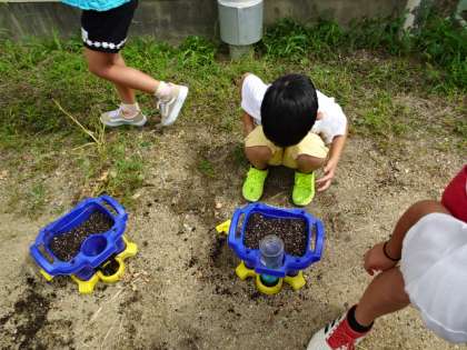 今日はうえきばちを整理して最後にカブの種をうえました。