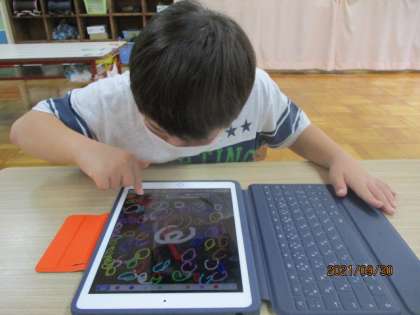 お絵かきアプリを使って,タブレットでお絵かきを楽しみました。