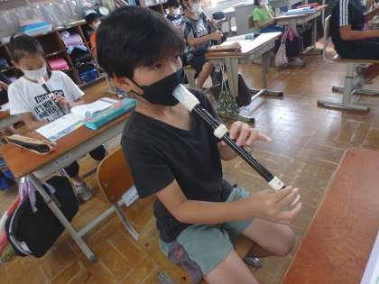 「とどけようこのゆめを」の曲に合わせてリコーダーを演奏しました。夏休みからしばらく間が空いていましたが,子どもたちはこれまでに習った音の指使いを思い出し,しっかりと演奏することができていました。