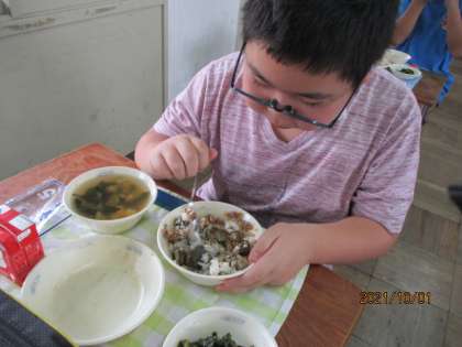 今日の給食は肉みそ納豆でした。