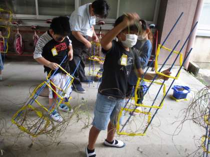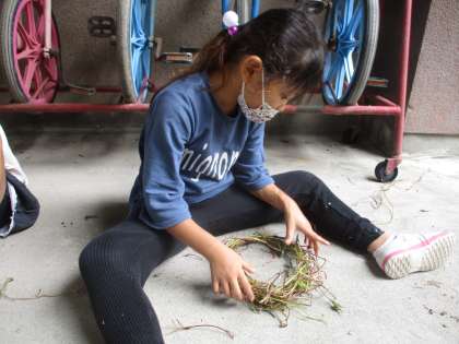ツルが外れたら,輪っかを作ります!!しばらく乾燥させてから,飾りつけをする予定です。