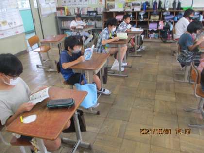 テストが終わった後は,静かに本を読むという習慣がずいぶんついてきており,一人一人自分の読みたい本にむかっています。