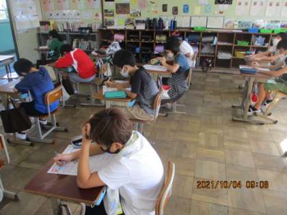 今日の算数は「分数」のテストをおこないました。