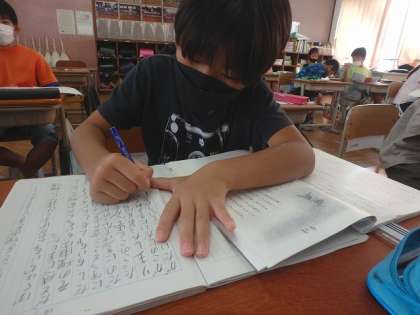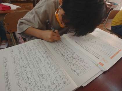 「ちいちゃんのかげおくり」の学習を終えて,自分が感じたことをまとめました。「戦争はダメだと思う。」「第○場面のところで…。」とそれぞれに感じたことを書くことができていました。