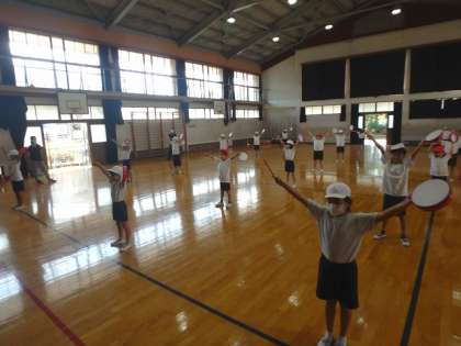 全員揃って初めての練習です!パーランクを持つ手の指先まで集中させ,かっこよく踊ることができていました。
