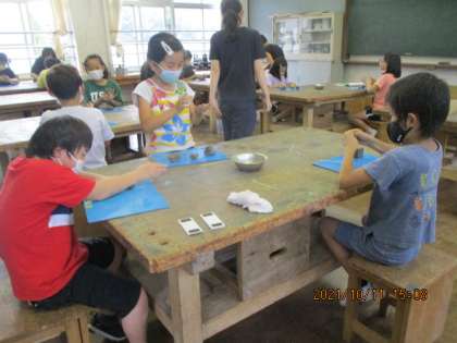 今日は,陶芸用の粘土で箸置きを作りました。