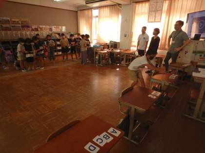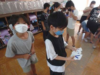 グループでアルファベットを順に並べる活動をしました。他のグループと対抗戦で行ったので,子どもたちは大盛り上がりでした。順番や発音,しっかりと覚えていきたいですね♪