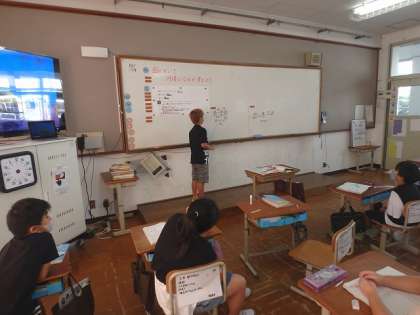 この日は何倍の何倍を求める問題に挑戦しました。関係図を使って,順に考える求め方と黄色は赤の何倍かを考える求め方について話し合うことができました。