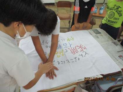 目前に迫ってきた海の家に向けて「学級旗」の作成を進めています。
